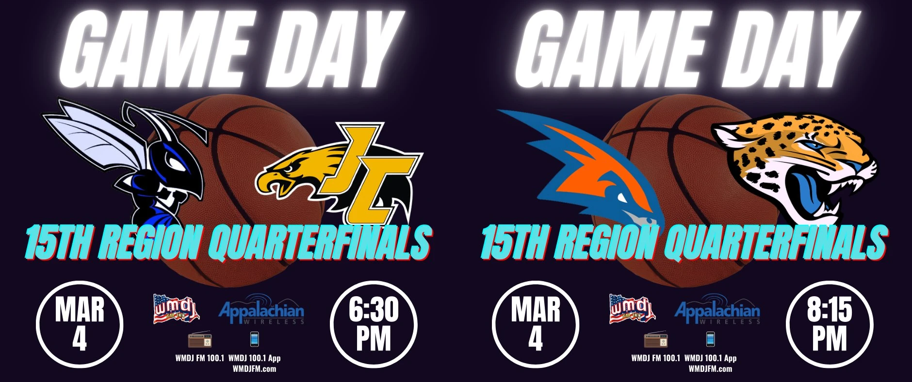 High school basketball on WMDJ-FM 100.1 is presented all season long by Appalachian Wireless, and sponsored by Meka Hall Castle for Floyd County Attorney, Howard Family Pharmacy, Floyd County Circuit Court Clerk Douglas Ray Hall, SecurAll Security Systems, Jesse Osborne Insurance, Floyd County Attorney Keith Bartley, McDowell Professional Pharmacy, Robinson’s Septic Service, Community Trust Bank, Sims Furniture, All-Pro Pest Control, and Ashley Tackett Laferty for Floyd District Court Judge.