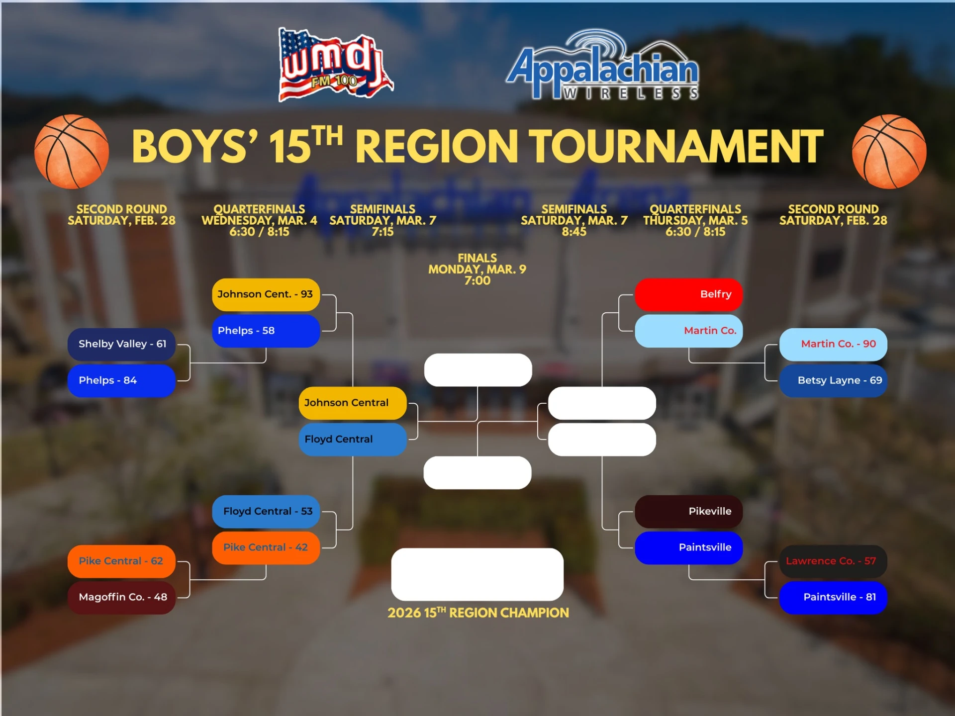 Johnson Central and Floyd Central will meet in the first semifinal game on Saturday, March 7th at 7:15pm.