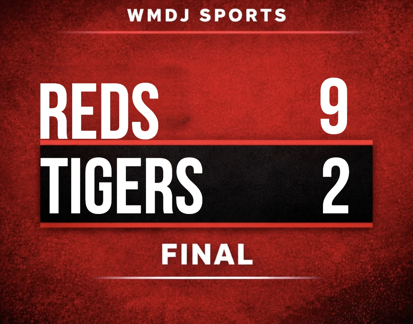 CINCINNATI, Oh. (WMDJ) — The Reds used a power surge and a big performance from Sal Stewart to beat the Tigers 9-2 in Game 2 of the series Saturday at Great American Ballpark.